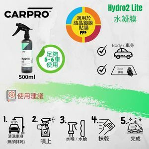 CarPro 水立方增亮版是一款易於使用且無需擦拭的噴霧保養劑。 配方中蘊含親水性玻璃纖維、矽聚合物和含氟聚合物,這些高效成份在沖洗過程中一旦與水接觸,即可形成“水電粘合” (Hydroelectric bonding)的效果,將保養劑從親水性轉化為疏水性,打造出耐用的矽膠外殼。外殼不但擁有極佳的疏水效能,而且在不同氣候和溫度下都表現穩定,在強效對抗UV之餘更可抵抗差不多所有類型的酸性鹼性溶液和溶劑,為愛車提供長達3個月以上的極緻保護,光潔亮麗。